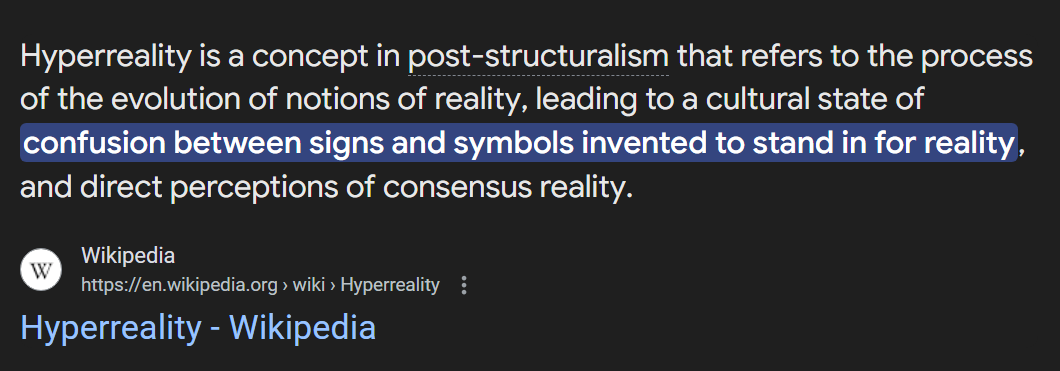 We use all sorts of ‘hypernyms’ to construct our own ‘hyperreality’.