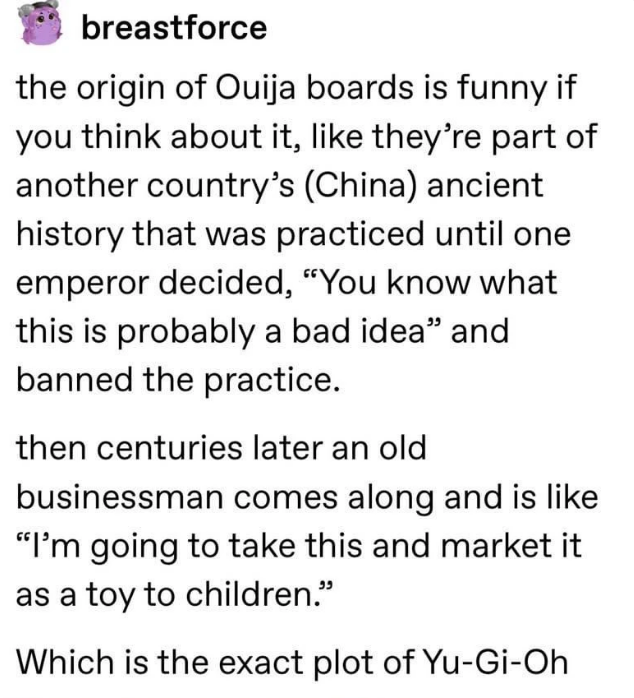 Typically, though, people get ‘freaked out’ and don’t properly close their Ouija boards and there are all types of stories about hauntings and whatnot. That’s part of the rules when performing a ceremonial magic or ritual.